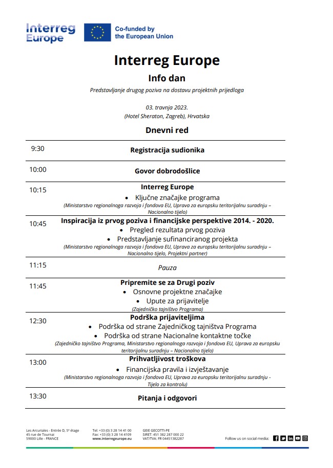 OBAVIJEST! U okviru programa „Interreg Europe“ otvara se drugi poziv za prijave natječaja koji je otvoren od 15. ožujka 2023. do 09. svibnja 2023. u podne. U sklopu programa organiziran je Info dan Predstavljanje drugog poziva na dostavu projektnih prijedloga, koji će se održati u ponedjeljak, 03. travnja. 2023. od 9:30 do 14:00 u Hotelu Sheraton, u Zagrebu, Hrvatska. Na sljedećoj poveznici se možete prijaviti i vidjeti više informacija: Info event for Croatian beneficiaries | Interreg Europe […]